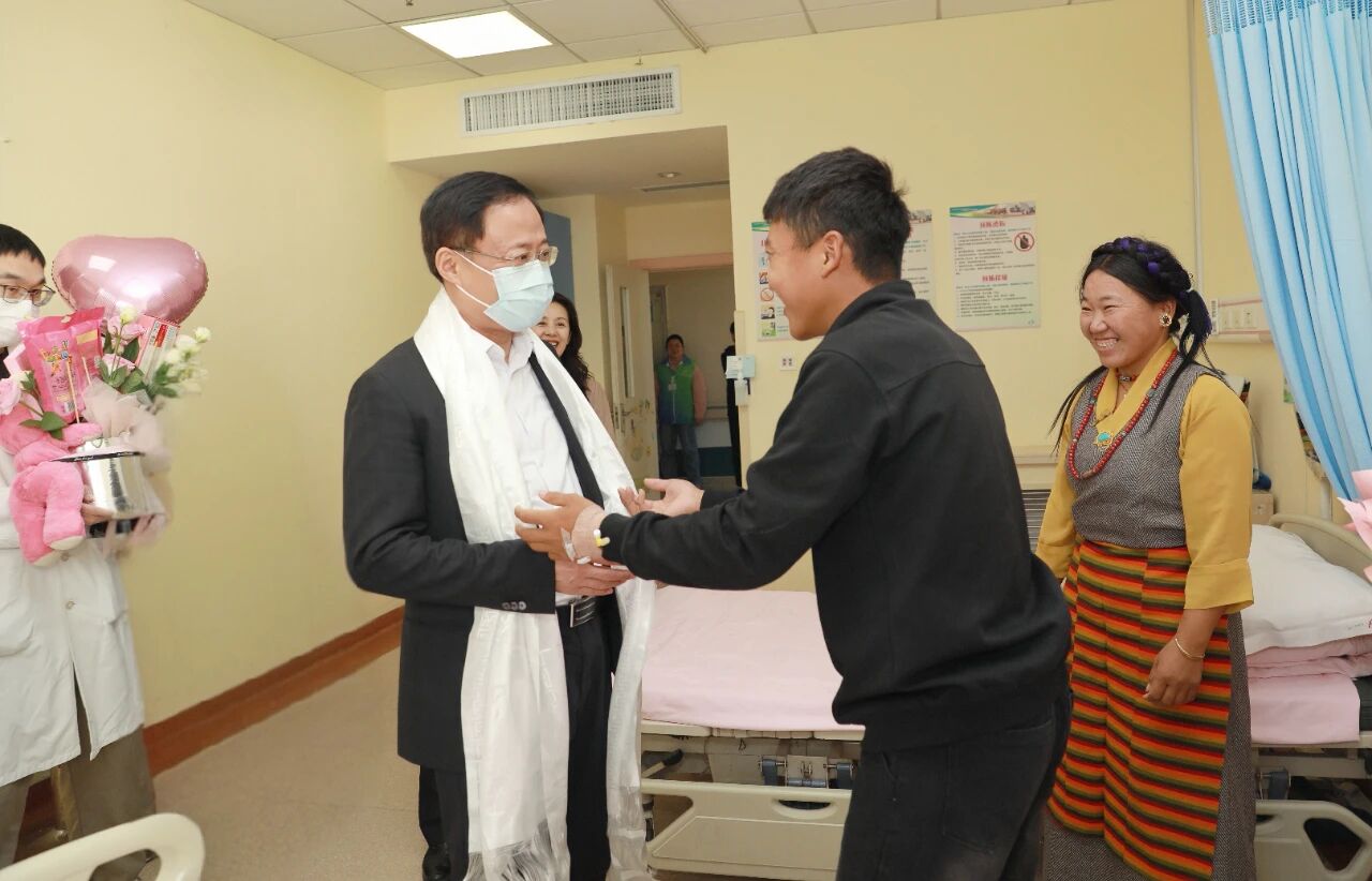 桑珠孜区委常务副书记、常务副区长,青岛市第十一批援藏干部人才组领队石小峰,以及桑珠孜区委常委、政府党组副书记、副区长孙小伟也专程赶到医院,为患儿送上暖心祝福。
