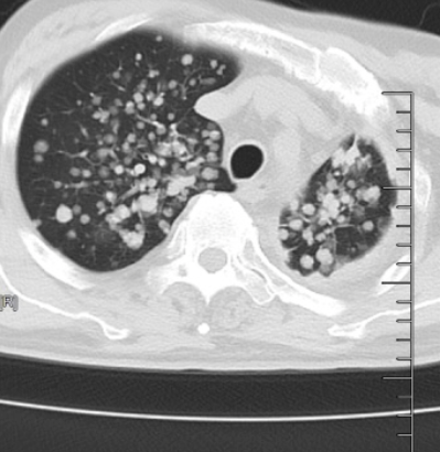 △原发性肺癌伴双肺弥漫多发转移瘤