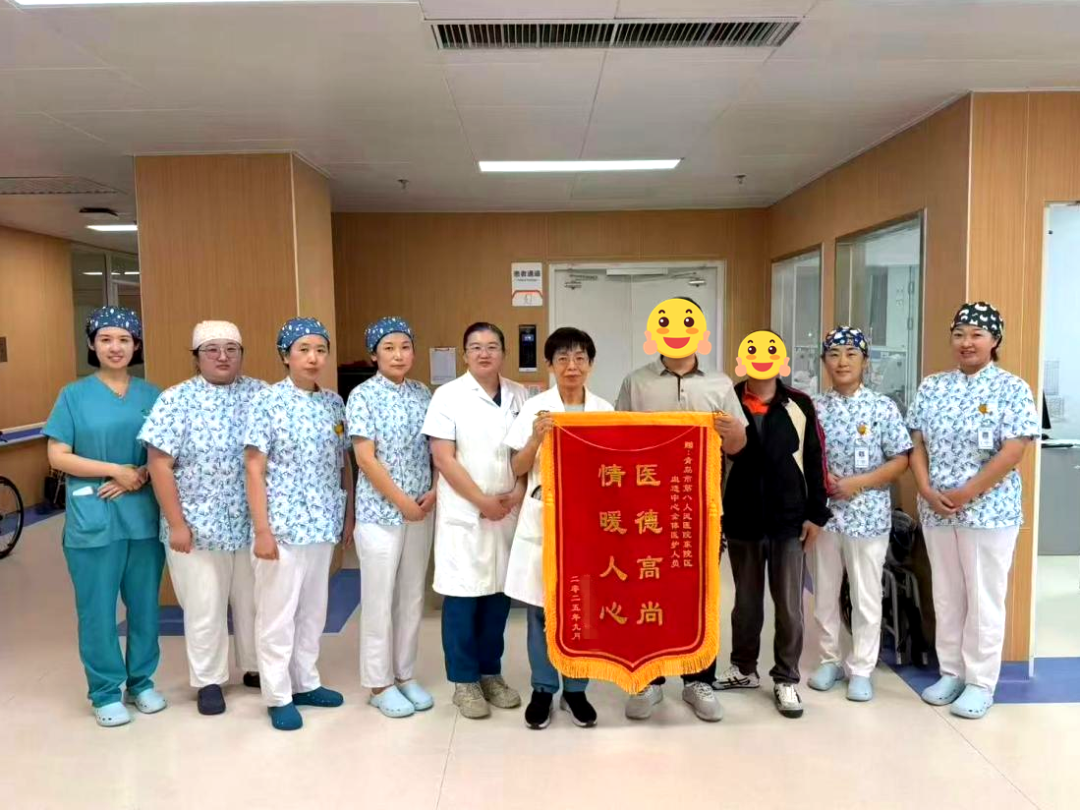 在生命的至暗时刻,总有一群白衣天使以专业与温情点亮希望。近日,青岛市第八人民医院东院区肾内科病房与血透室接连收到同一患者家属送来的两面锦旗,字里行间饱含着对医护团队医者仁心、精准施治的崇高敬意,更见证了一段跨越时间的生死守护。
