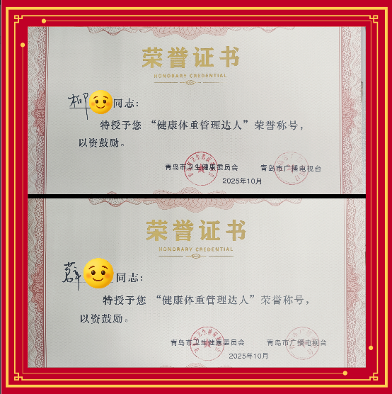 10月17日,由青岛市卫生健康委员会、青岛市广播电视台联合主办的“推进体重管理助力全民健康”大型科普融媒体活动,在青岛市广播电视台圆满落幕。活动吸引全市各行各业数百名健康达人参与,经过数月科学评估与综合评比,青岛市第三人民医院推荐的柳先生和薛女士凭借科学的体重管理方案与长期坚持的显著成效,成功斩获“健康体重管理达人”称号!这份亮眼荣誉的背后,不仅是两位达人“管住嘴、迈开腿”的自律,更离不开青岛市第三人民医院体重管理门诊——慢病管理团队的专业支撑。因为我们始终坚信:减重从不是“一次性冲刺”,而是需要长期陪伴的“健康马拉松”。