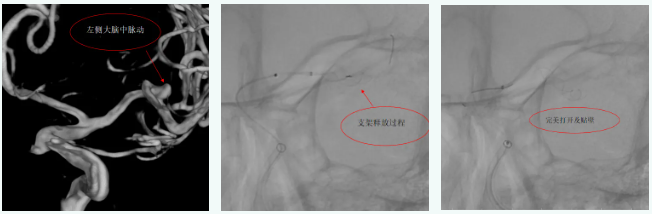 患者左侧大脑中动脉动脉瘤,使用血流导向装置,支架完美打开及贴壁,术后3天顺利出院。