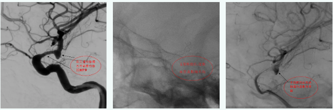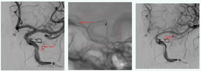 眼动脉动脉瘤合并后交通段动脉瘤,置入血流导向后,动脉瘤内即可形成造影剂滞留,手术过程30分钟,患者术后2天出院。