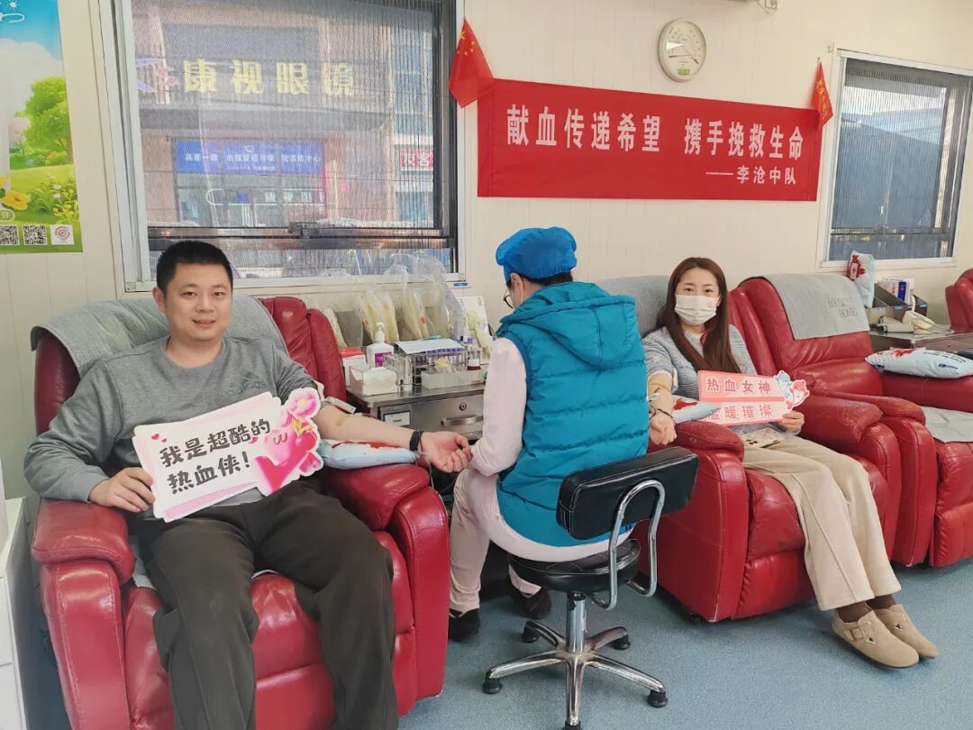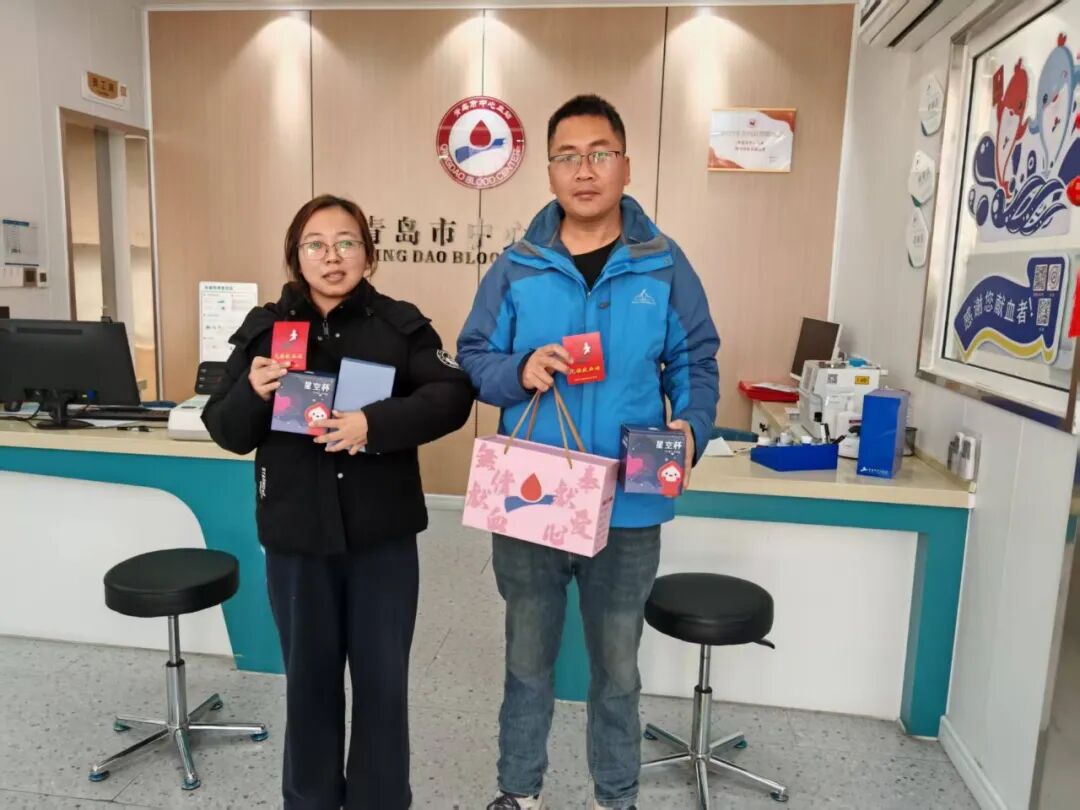 在城阳利客来献血屋,谢江峰先生和李晓庆女士这对夫妻用相同的热忱,捐献滚烫的热血,采血结束后,医护人员为他们递上献血证。夫妻坐在一起,翻看彼此的献血记录,分享着献血后的小感受。阳光透过玻璃窗洒在他们身上,一张张带着笑意的脸庞,成了现场最温馨的画面。
