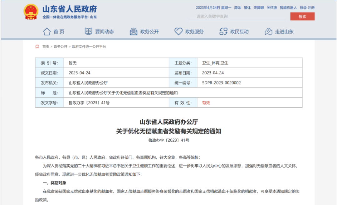 为深入贯彻落实党的二十大精神和习近平总书记关于卫生健康工作的重要论述,进一步树牢以人民为中心的发展思想,加强对无偿献血者的人文关怀,经省政府同意,现就进一步优化无偿献血者奖励政策通知如下: