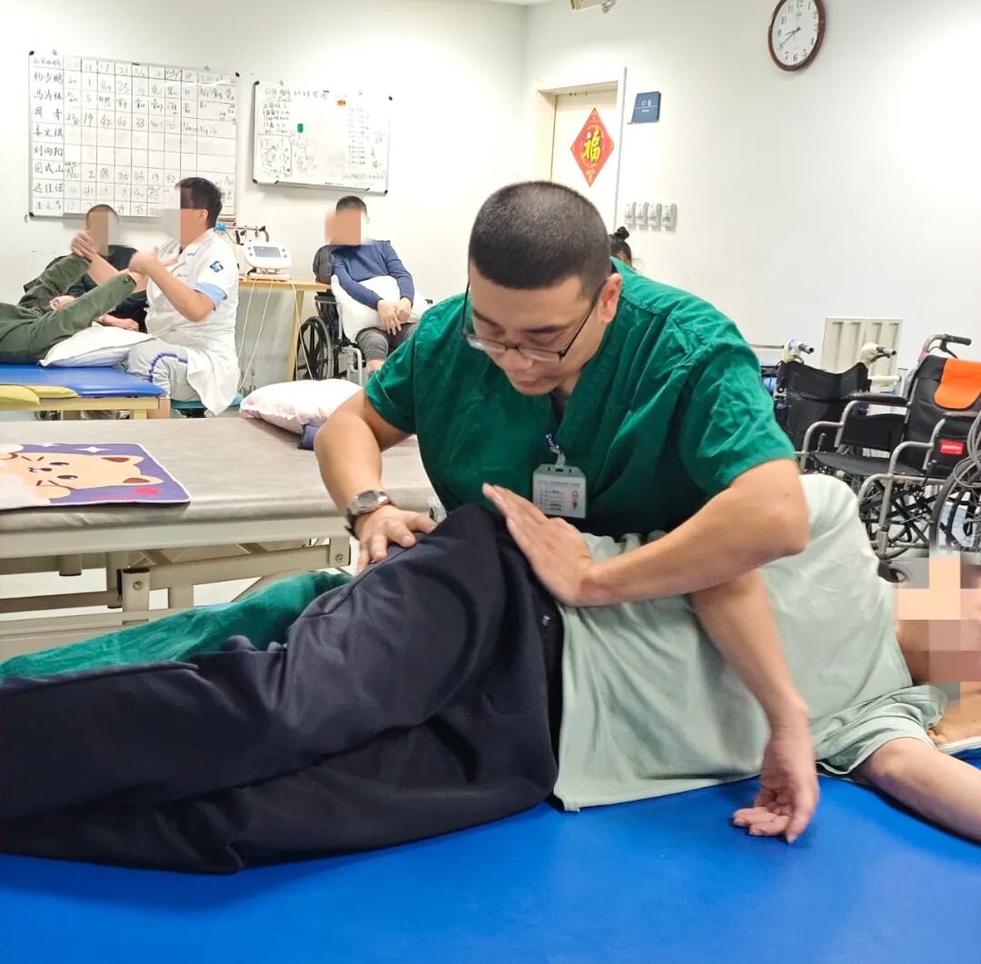 康复医学科主任王素平接诊后,首先组织医师、治疗师、护士对程女士的病情进行了精准的评估,并根据评估结果制定了详细的康复治疗方案。而具体治疗方案的实施,由康复治疗师国成山负责。在接下来的治疗中,国成山利用川平反复促通疗法对程女士的手指及下肢进行促通训练,同时利用Bobath技术调整其下肢的生物力线,收效明显。经过一段时间的治疗,程女士便可以独立步行,并且手指屈伸不利的情况也得到了明显的改善。