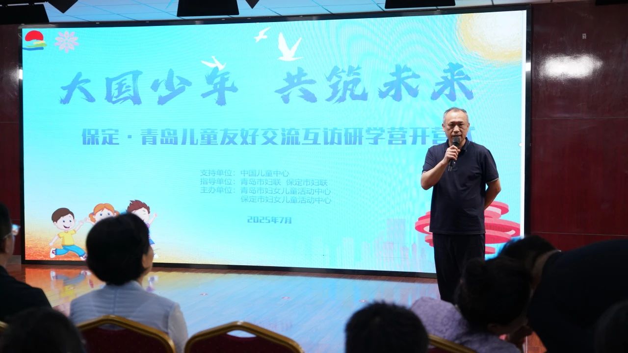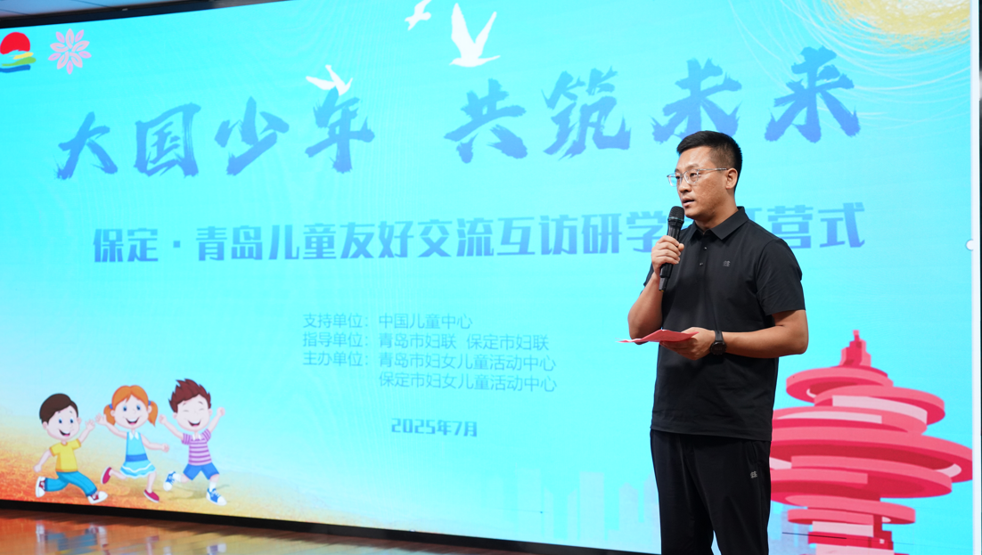 青岛市妇女儿童活动中心主任吴晓谦致欢迎辞,表达了对保定儿童友好团队的热烈欢迎。希望保定的小团员们能深入感受青岛的文化底蕴和发展成就,共享儿童友好城市带来的可观、可感、可知的儿童体验场景。保定市妇女儿童活动中心主任魏俊表示,此次夏令营不仅是一次知识与文化的交流,更是两地儿童友好工作的互鉴学习与经验交流,对推进两地儿童友好城市建设很有意义。