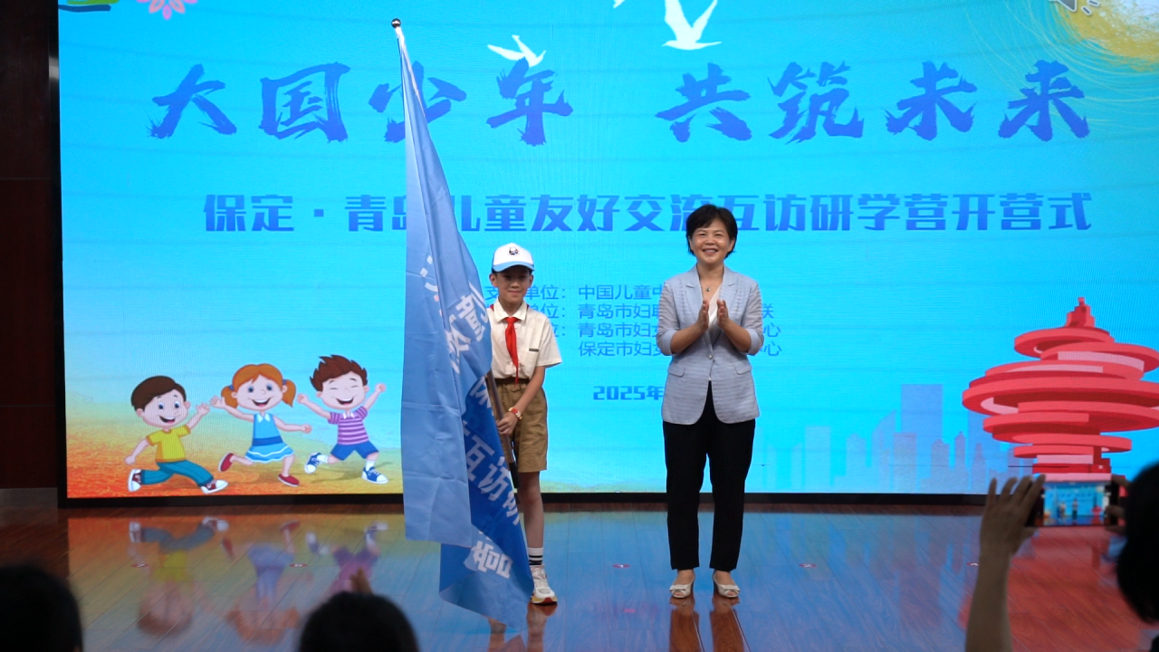 开营仪式上,青岛市妇联党组成员、副主席魏鲁华为夏令营授旗,标志着夏令营正式启动。