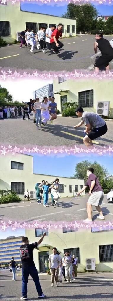 本次赛事吸引了全院职工的广泛参与,来自不同分会的8支队伍展开激烈角逐,队员们随着长绳的节奏轻盈跃动,加油声此起彼伏,现场气氛热烈。