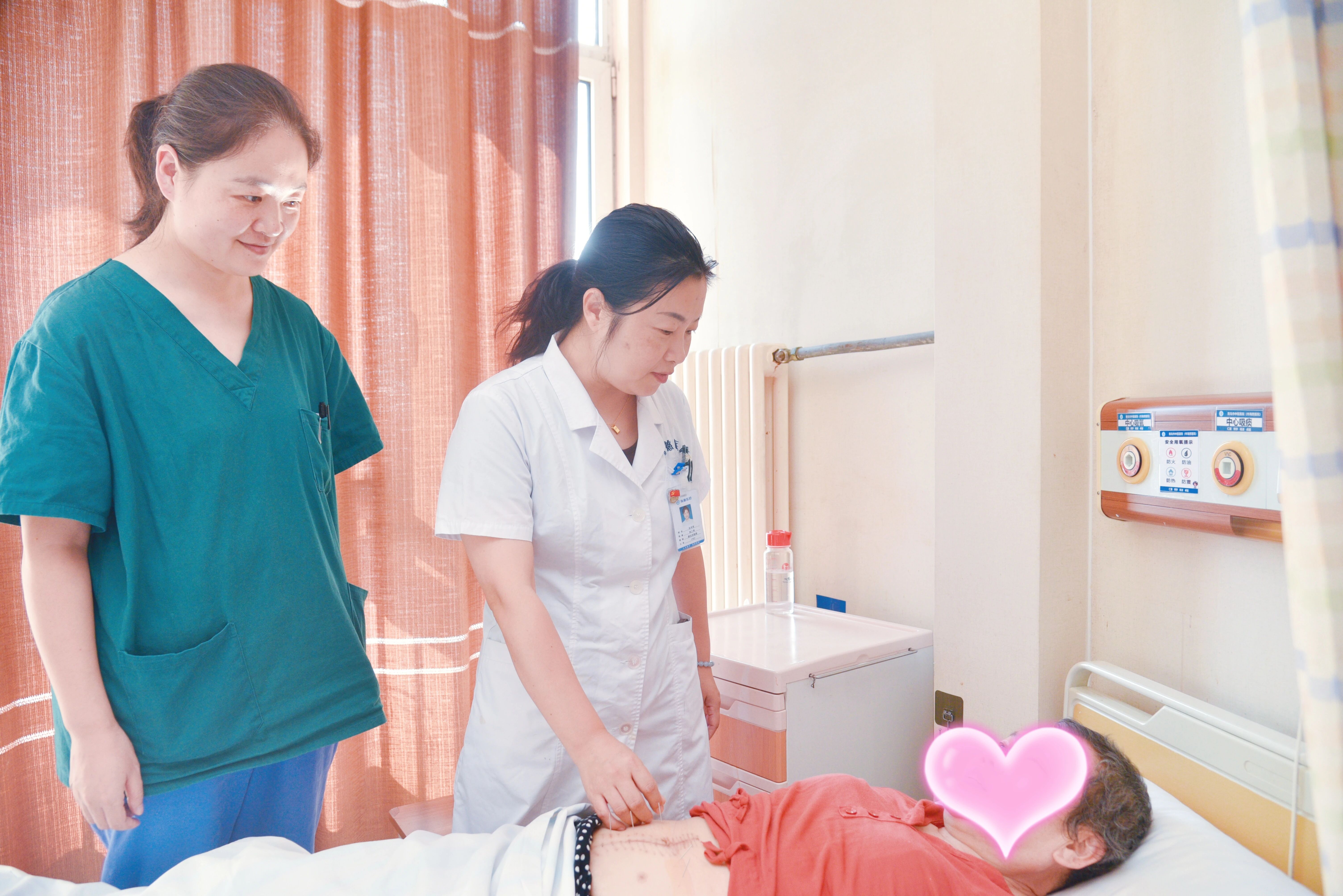 科室将辨证施治与现在诊疗技术相结合,中西医并重,建设妇科中西医结合快速康复病房。依托集团强大的中药治疗及中医非药物疗法,就围手术期患者的术前预康复处理、术中保温、止疼、术后助眠、止吐、止疼、止血、促进胃肠道恢复等及放化疗患者的助眠、缓解周围神经损伤、止吐、升白升粒升板等,在相应的西医处理措施之外,按照中医辨证,给予对应的中医综合治疗,如术前给予耳穴贴压、安睡贴缓解患者紧张情绪;术中给予相应穴位电刺激对全麻手术患者可明显改善自身体温调节,减少术后寒颤、苏醒延迟的发生,降低围术期心脏不良事件发生率;术后给予针灸止痛、降逆止吐、促排气,中药理气通络方促进肠蠕动;每日扶正补气滋阴食疗方;热奄包热熨温经止痛。放化疗患者可使用耳穴贴压、安静贴保证充足睡眠;中药熏洗手足预防周围神经损伤;针灸降逆止呕,减少恶心呕吐的放化疗副作用;中药补中益气升高白细胞、粒细胞及血小板。