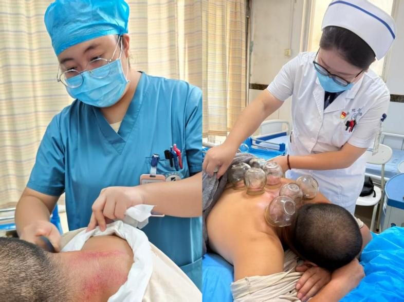 急诊科护士遵医嘱为患者实施"刮痧-走罐--留罐-放血"联合疗法,以缓解高热病人不适症状。治疗结束后,患者体温降至37.8℃,头痛、咽痛明显减轻,全身肌肉酸痛症状缓解。离院前体温恢复正常。吴先生对于治疗效果十分惊奇,对中医外治法赞不绝口。