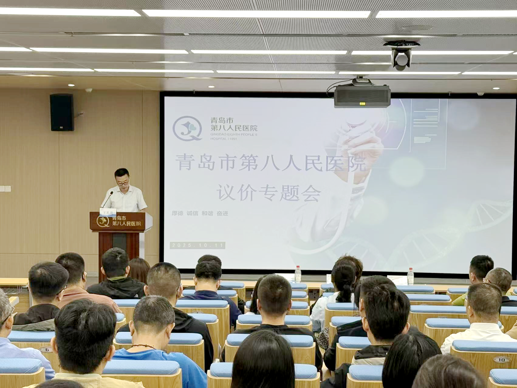 为规范医疗物资采购,压实购销双方廉洁责任,营造风清气正的医企合作环境,10月11日上午,青岛市第八人民医院组织召开供应商廉洁谈话会议。医院党委书记温成泉、总会计师王孔亮出席会议,会议由医院党委委员、纪委副书记张成飞主持,医院采购部门及耗材供应商代表200余人参加会议。