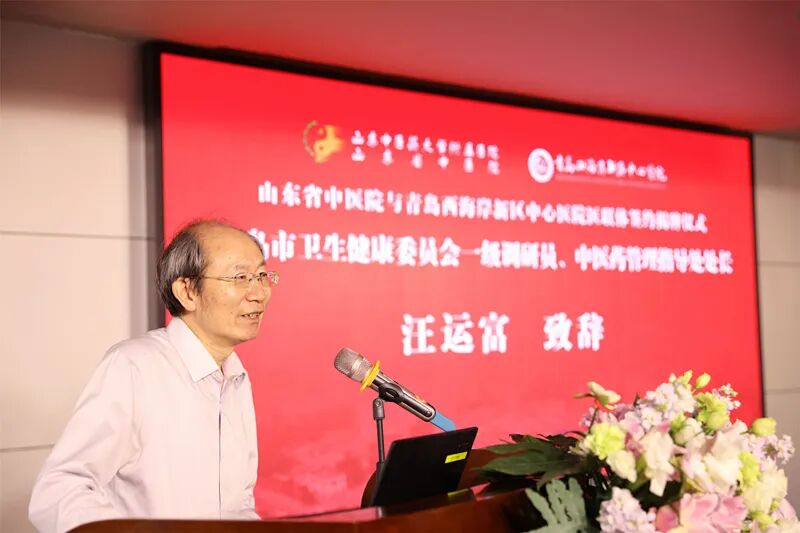 随后,青岛市卫生健康委员会一级调研员、中医药管理指导处处长汪运富致欢迎辞。他表示,青岛市一直深入聚焦打造中医药强市的目标定位,不断加强中医药服务、人才、产业“三大体系”标准化建设。青岛西海岸新区作为青岛市经济发展的“排头兵”,近年来,始终将中医药事业发展摆在突出位置,本次省中医院与区中心医院签约建立医联体,是省中医院医联体签约的青岛市首家三级公立综合医院,对于激发综合医院中医药发展活力,提升中西医协同服务能力,造福新区百姓具有重要意义。