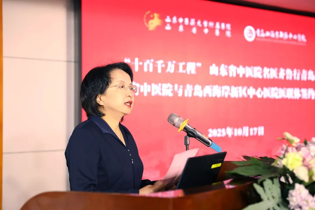 山东省中医院副院长李刚在致辞中表示,在省中医七十华诞的重要历史节点上,今天的签约揭牌,正是“十百千万工程”推动优质中医药资源向基层延伸的切实举措,是促进分级诊疗建设的有力抓手。他表示,未来将聚焦青岛西海岸新区中心医院发展需求,在重点学科建设、特色技术推广、科研项目协作等方面提供更精准、更有力的支持,共同构建“省-区-社区”三级联动的医疗服务网络,为提升西海岸新区中医药服务能力、守护百姓健康福祉、推动中医药强省建设贡献更大力量。