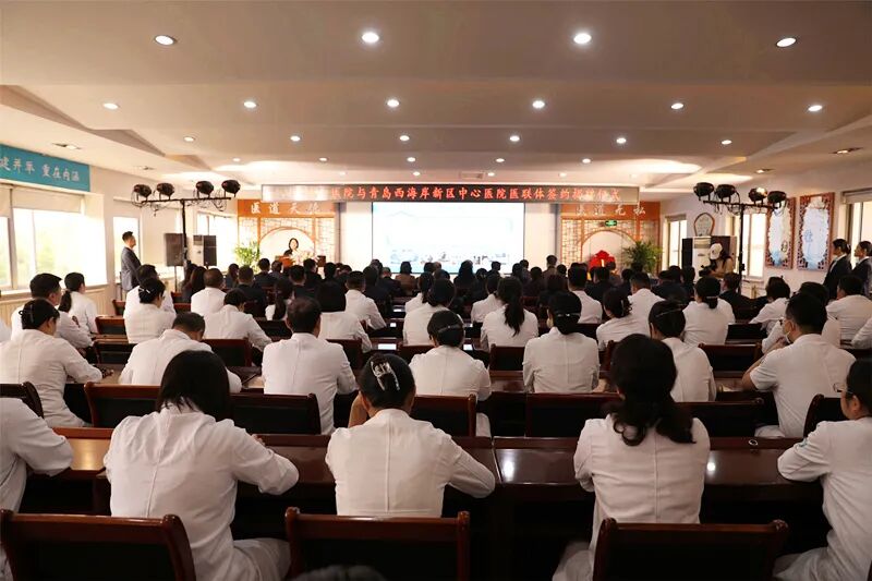山东省中医院副院长李刚、山东省中医院公共事业发展部副主任路士华、青岛市卫生健康委员会一级调研员兼中医药管理指导处处长汪运富、青岛西海岸新区卫生健康局二级调研员黄萍、青岛西海岸新区中心医院党委书记吴磊、青岛西海岸新区中心医院党委副书记、院长孙建伟以及医院党政领导班子成员、健共体单位负责人、全体中层干部参加仪式。会议由青岛西海岸新区中心医院副院长李国华主持。