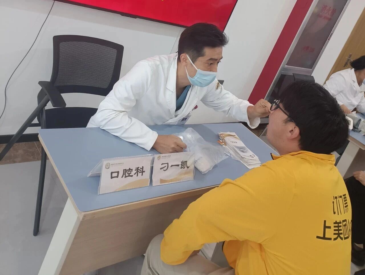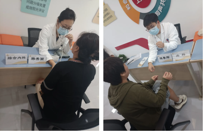 义诊现场科学分区,设有问诊咨询、基础检查、健康宣教等区域,秩序井然,服务高效。专家们发挥专业特长,为居民提供个性化健康指导:中医科主任郝新洁通过“望闻问切”为居民辨证施治,普及中医“治未病”理念;内科主治医师韩秀丽细致解答关于高血压、糖尿病等慢性病的防治问题,提供详尽的用药与生活指导;口腔科主治医师刁一凯专注口腔健康检查,耐心讲解日常保健要点;外科温粤辉医师为受颈肩腰腿痛困扰的居民进行体格检查,制定康复方案;愈安医养院医护团队则聚焦老年人健康需求,深入解答失能半失能照护、居家康复措施及相关政策,受到社区居民的欢迎。