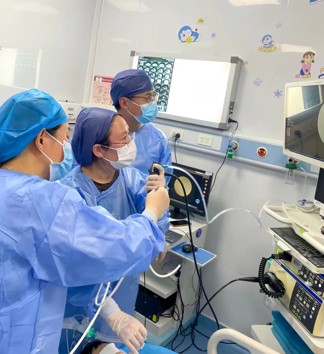 接诊医生评估后将悦悦收入呼吸内科病房。在详细的病史询问及初步检查后,诊断为迁延性细菌性支气管炎。治疗团队及时为悦悦进行了电子支气管镜检查及支气管灌洗治疗,灌洗出大量黄白色粘痰后,悦悦明显好转。