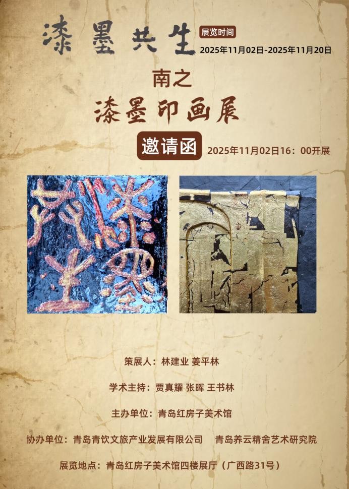 青年艺术家刘蓓蓓“漆墨共生”漆墨印画艺术展2025年11月2日在青岛红房子美术馆举行。