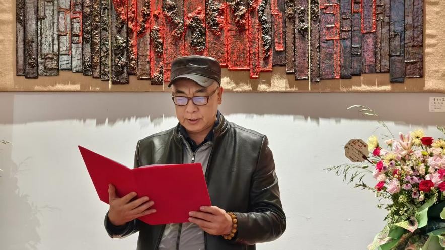 主持人宣读了因在外地无法参加开幕式的著名作家刘杰发在“刘爷说事儿”微信公众号里的《刘蓓蓓的漆画艺术》:坦率的说,当我看到蓓蓓的大漆作品时,用震撼来形容毫不为过。她的作品虽然通过传统的大漆为原材料,但是运用了现代的艺术思维,把传统与现代毫无违和的结合在一起,把雕塑、书法等艺术门类全部兼容其中,既有传统工艺的大气,又具现代艺术的冲击,其中更暗含了艺术家对世界的认知,对生命的探讨,对艺术的敬畏,对未来的期许!
