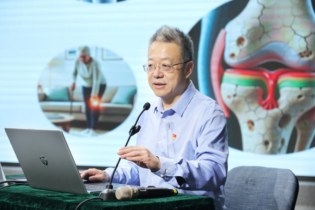 青岛市市立医院党委书记、总院长、骨科专家于腾波作《膝关节骨性关节炎诊疗新策略》主题讲座。围绕膝关节炎的发病机制、居家康复及预防措施,于腾波进行了深入浅出的细致讲解,并介绍了一些简单有效的膝关节锻炼方法和日常保养技巧,进一步提高了老年朋友对膝关节骨性关节炎的认识,增强自我保健意识。