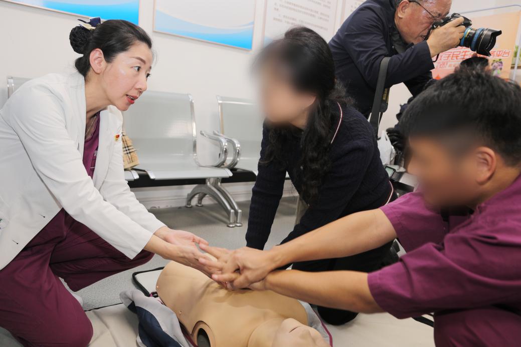 医护人员现场还为学员们测量血压,“手把手”开展心肺复苏急救培训,发放健康科普手册。义诊现场秩序井然,气氛热烈,专家团队专业又暖心的服务赢得老年朋友的频频点赞与高度认可。