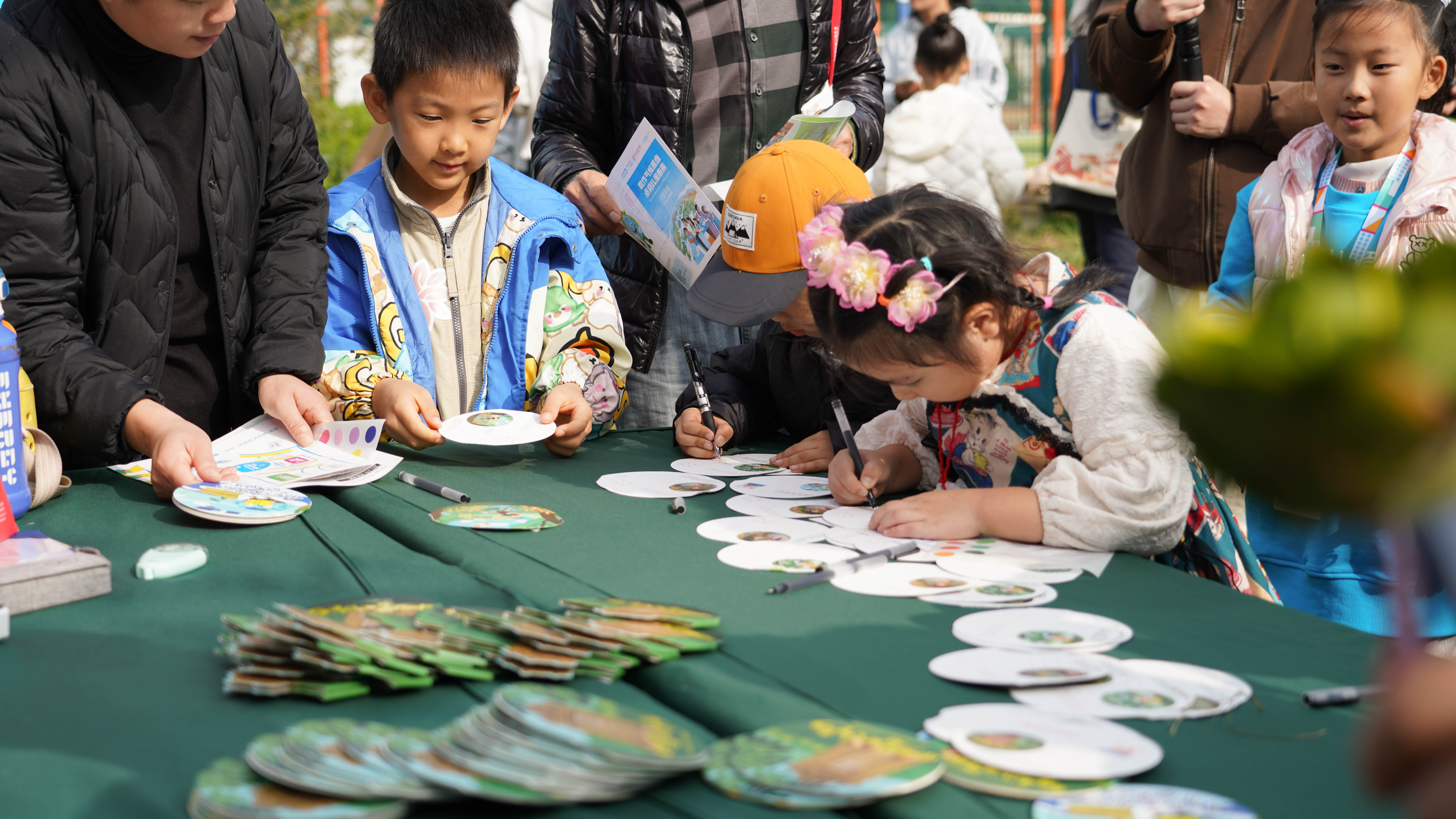 静谧的“儿童与自然”诗歌风采展演区为活动注入了人文温度。儿童们的原创童诗作品悬挂于自然场景中,孩子们漫步其间静静阅读,为心仪的作品贴上赞赏的贴纸,或现场朗诵以表达对自然的热爱。展区特设的“环保邮筒”,收集了孩子们写给“气候朋友”的祝福、金点子与小建议,汇聚起来自未来的真诚声音。