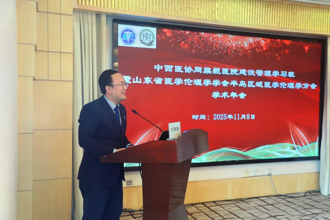 11月8日,由山东省医学伦理学学会主办,半岛区域医学伦理学分会(以下简称“分会”)、青岛市公共卫生临床中心(以下简称“中心”)承办的中西医协同旗舰医院建设管理学习班暨山东省医学伦理学学会半岛区域医学伦理学分会2025年学术年会在青岛召开,来自省内各级医疗机构从事中西医结合及医学伦理学专业等相关的专家和学者参加了会议。