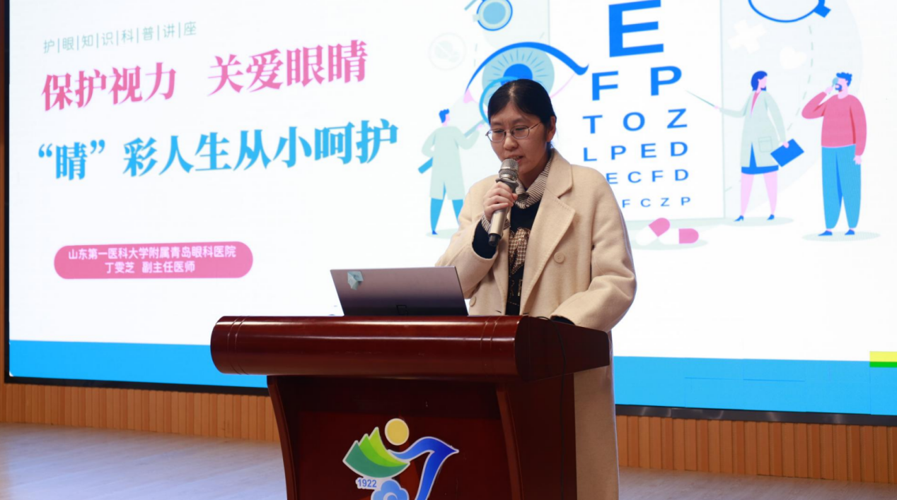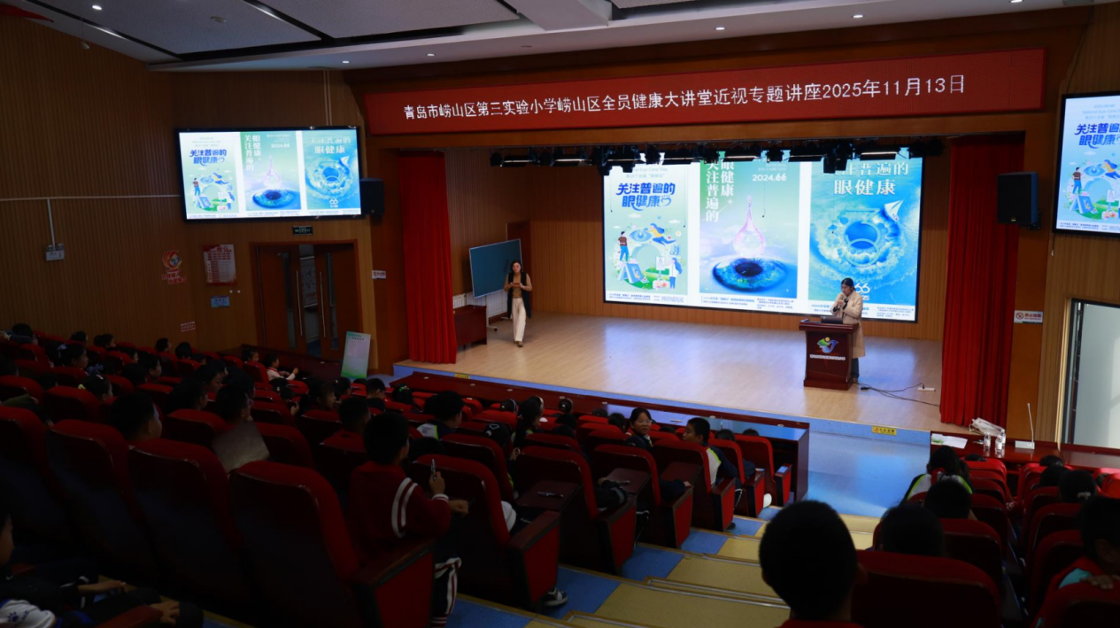 为切实筑牢儿童青少年近视防控防线,帮助学生养成科学用眼习惯,11月13日中午,青岛眼科医院北部院区眼视光学科丁雯芝副主任医师受邀来到崂山区第三实验小学,为四年级100余名学生带来了一场生动实用的近视防控科普讲座,以趣味讲解、互动问答的形式,将专业的护眼知识送到孩子们身边,赢得了师生们的一致好评。本次讲座由山东第一医科大学附属青岛眼科医院和崂山区金家岭街道社区卫生服务中心合作举办。