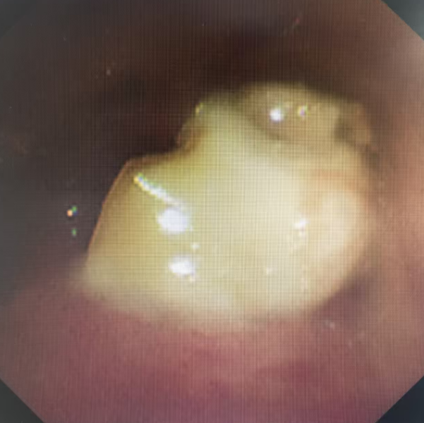 通过电子支气管镜,救治团队看到在宝宝细小的支气管深处,一颗已经被泡胀的花生死死地卡住,周围黏膜已经红肿发炎。医护人员默契配合,最终将这颗惹祸的元凶顺利取出。