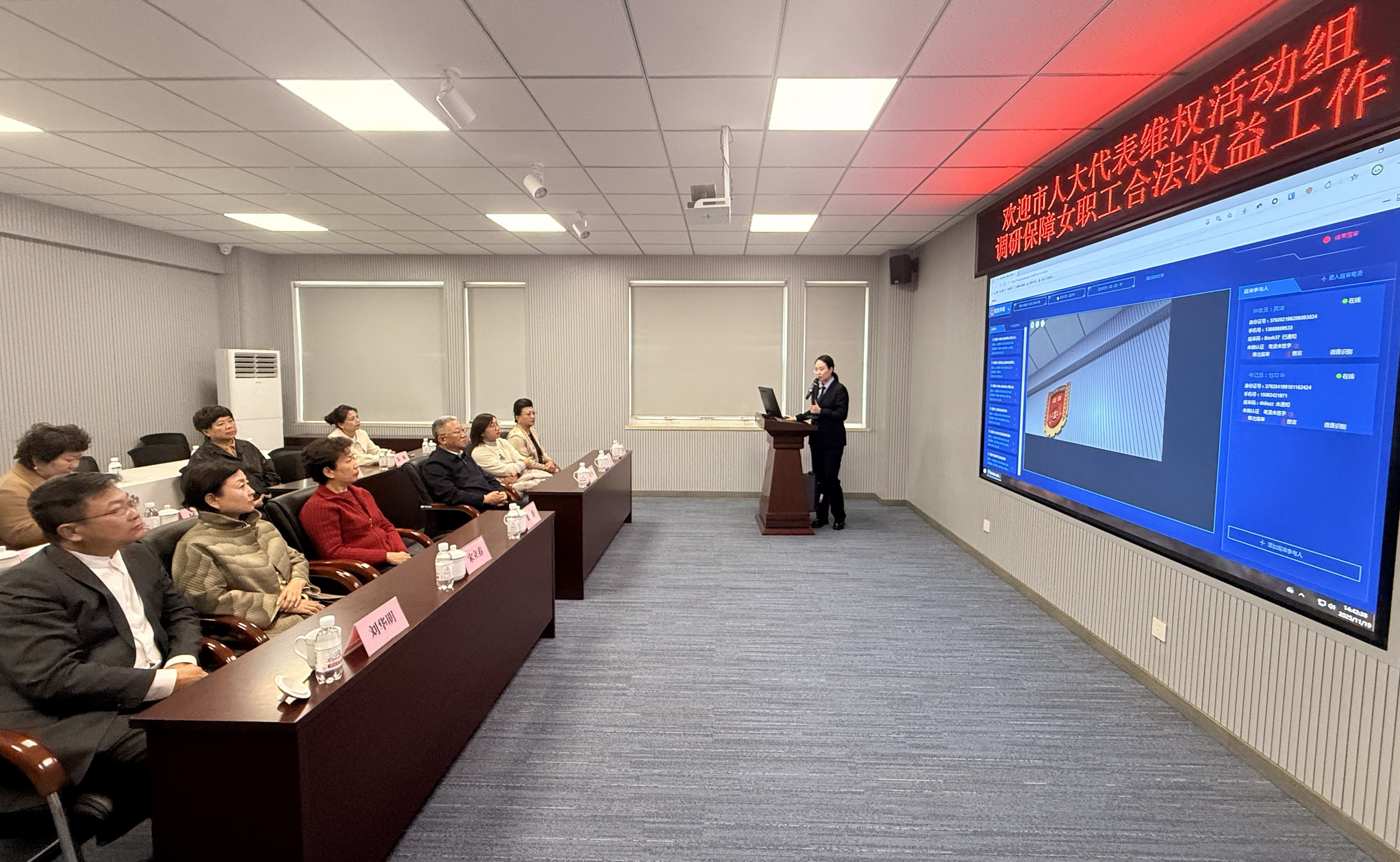 11月19日下午,青岛市人大常委会副主任栾新带领市十七届人大代表维护妇女儿童权益活动组,就“优化妇女就业创业环境,保障妇女就业创业合法权益”开展调研。社会建设工作室、市妇联有关同志参加调研。