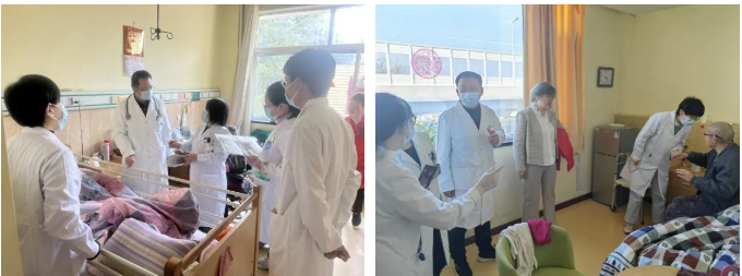 巡诊过程中,好几位都是在青岛市第三人民医院治疗过的老患者,看到为自己手术的专家到场非常开心。其中一位患者3周前因心律失常晕厥,经心内二科介入手术后未再发作,主管医师仔细给老人做术后的评估,老人对手术非常满意,除掉了压在心头“昏死”的恐惧。还有一位工作人员曾因重症心肌炎在青岛市第三人民医院抢救成功,现在仍活跃在养老助老岗位上,看到曾经救治的专家感到特别激动。专家们耐心倾听老人的诉求,结合检查结果用通俗易懂的语言沟通病情,缓解老人焦虑情绪,普及老年常见疾病预防、压疮预防、跌倒防护、应急处理等知识,提升老人自我保健技能,并为部分患病老人建立简易健康档案,便于后续跟踪服务,让老人感受到切实的关爱与尊重。对长期卧床、病情不稳定的患者,专家挨个进行查房查体,协助家庭医师调整治疗方案,让老人感受到“家门口”的温暖医疗。
