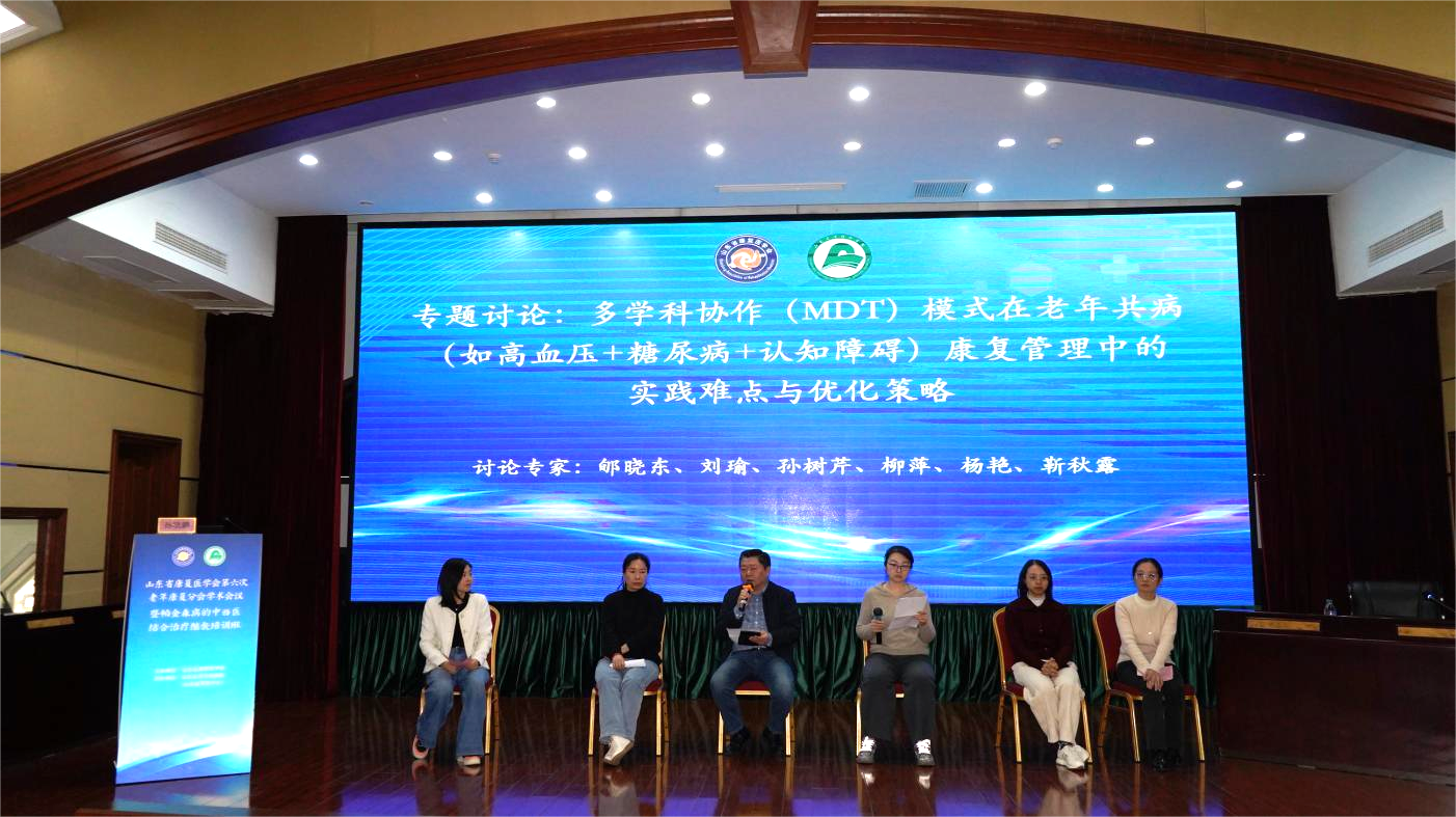 在分论坛1(老年康复)中,青岛市立医院的顾萍、烟台毓璜顶医院的宫兆华、山东省慢性病医院的孙晓鹏等专家,围绕老年慢病的营养饮食管理、肿瘤综合评估、认知行为干预等议题进行了深入分享。在专题讨论环节,专家们聚焦于多学科协作(MDT)模式在老年共病康复管理中的实践难点,结合高血压、糖尿病及认知障碍等案例,探讨并提出了切实可行的优化策略,为临床实践提供了精准的赋能支持。
